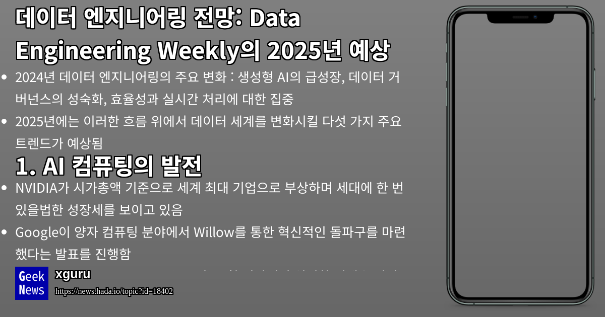 데이터 엔지니어링 전망: Data Engineering Weekly의 2025년 예상 | GeekNews